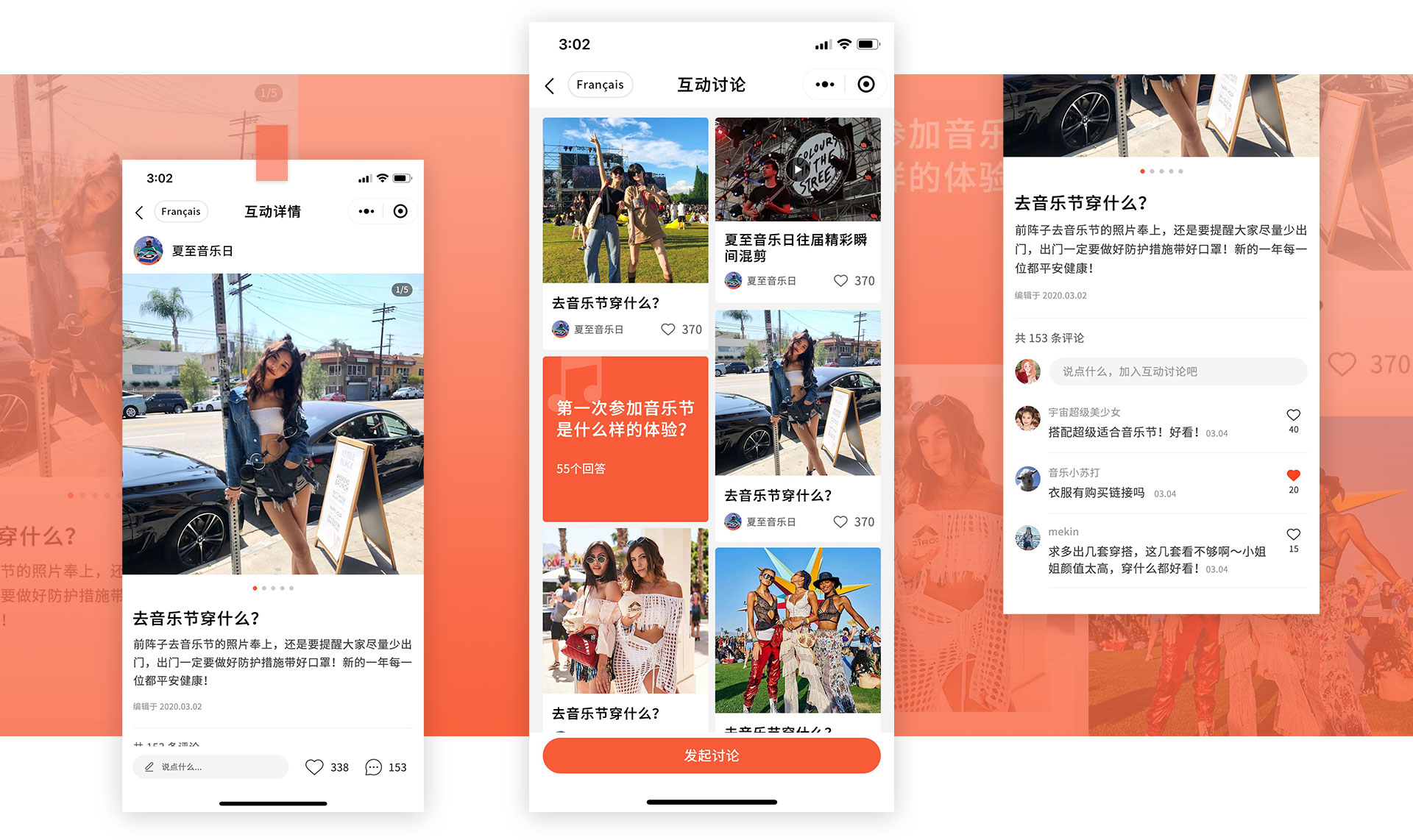 互动讨论构建活力社群 互动讨论模块支持上传图文(wén)、单文(wén)字与视频等多(duō)形式内容帖,保证用(yòng)户表达自我与意见反馈的多(duō)样性与灵活性,支持互动点赞与评论,使参加夏至音乐日活动的用(yòng)户能(néng)自发的聚集起来,形成一个有(yǒu)活力有(yǒu)内容的讨论社區(qū),增强線(xiàn)上線(xiàn)下用(yòng)户之间的情感联系,增加活动的趣味性与生命力。