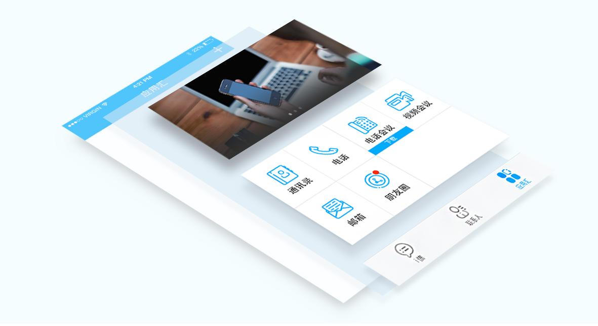 為(wèi)了使APP具(jù)有(yǒu)高度识别度和品牌意识,我们将“i”元素加入圆角图标中(zhōng),在传达商(shāng)務(wù)气质(zhì)的同时传递出独一无二的品牌创意。