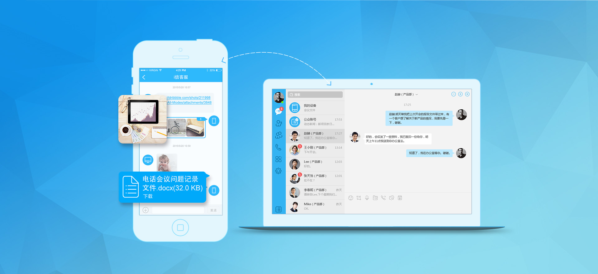 新(xīn)版i信可(kě)以进行图片、会议记录等重要文(wén)件快速传递,并且客户信息等商(shāng)務(wù)信息与企业的oa系统相连接,工(gōng)作(zuò)更加高效,為(wèi)了增加文(wén)件的保密性,可(kě)以开启阅读即焚功能(néng),确保文(wén)件不外泄。